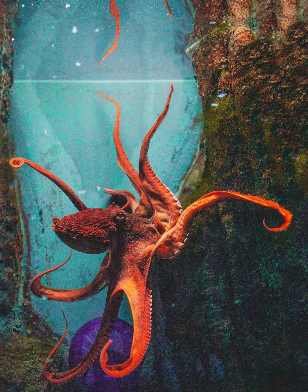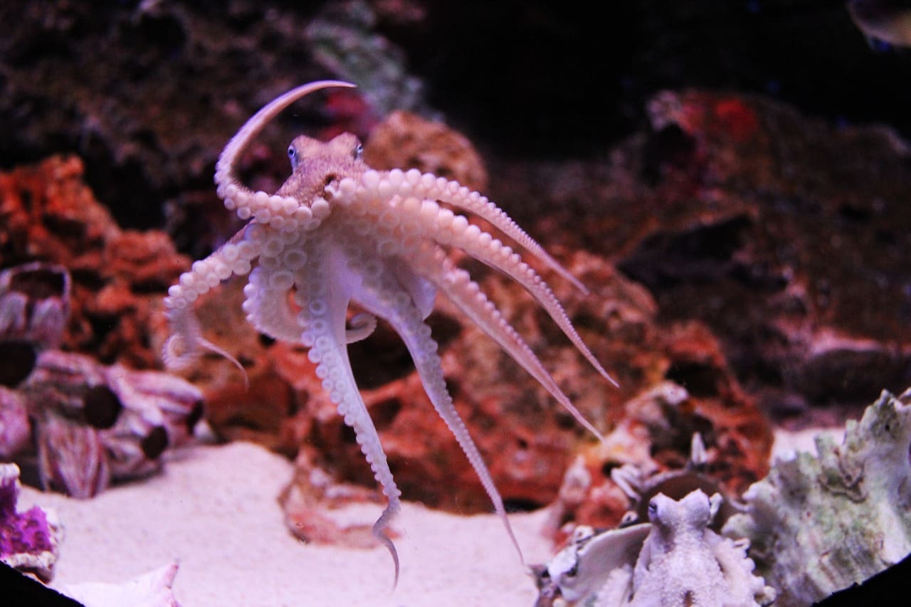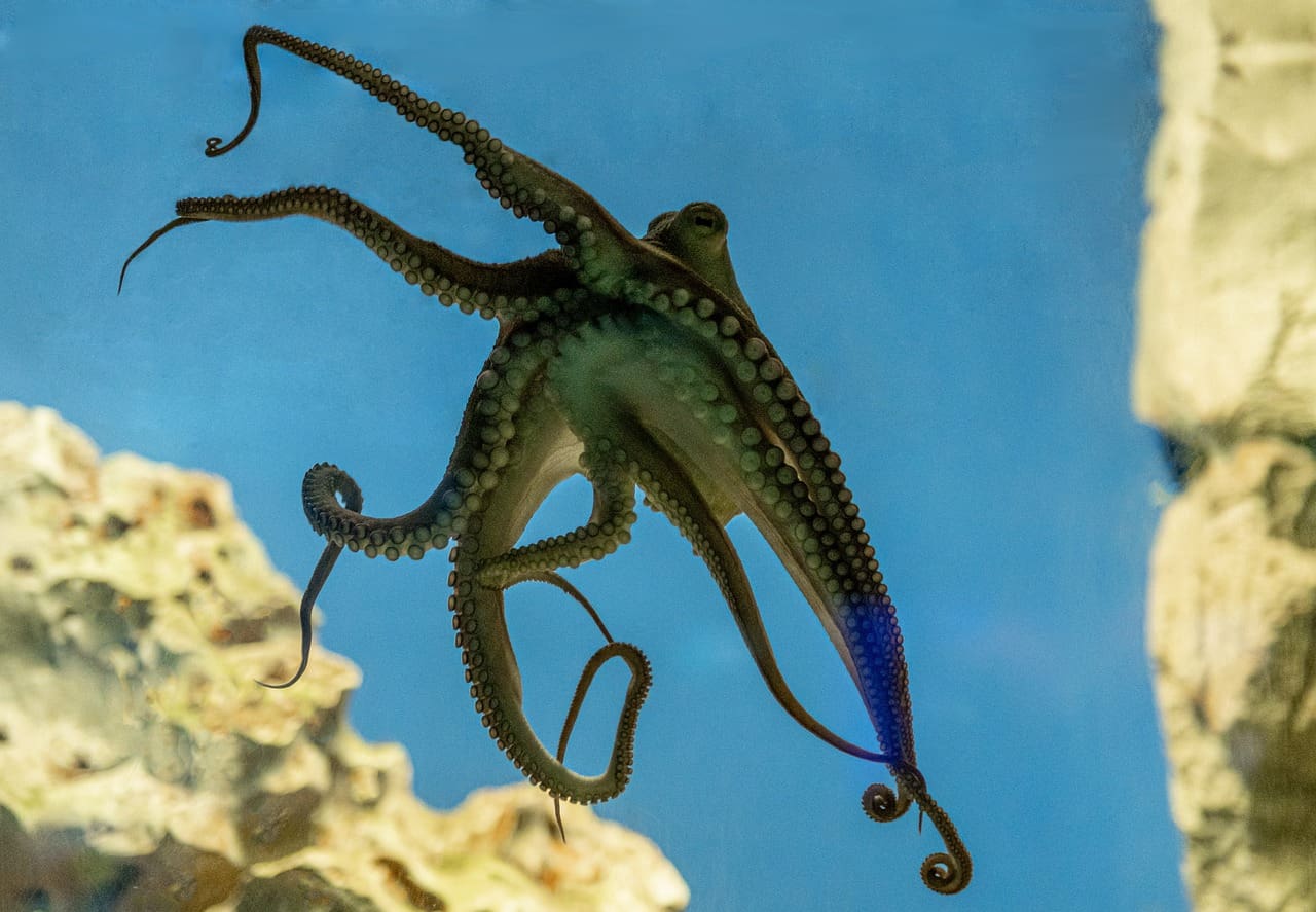 A soft-bodied marine creature with eight tentacles, known for its intelligence and ability to camouflage.