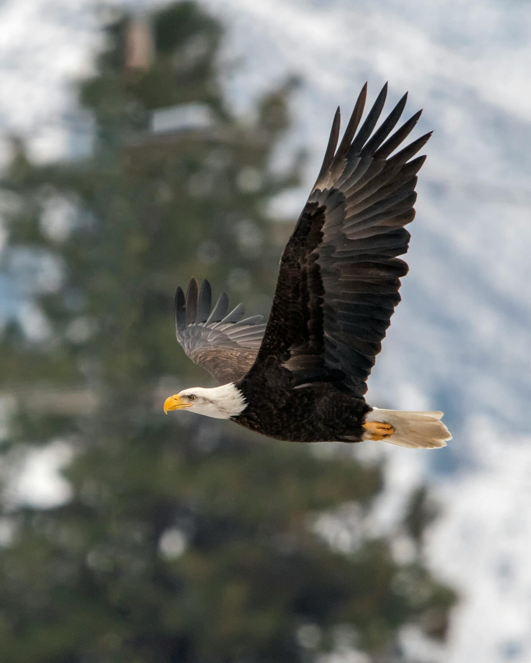 A majestic bird of prey with a white head and tail, symbolizing strength and freedom.
